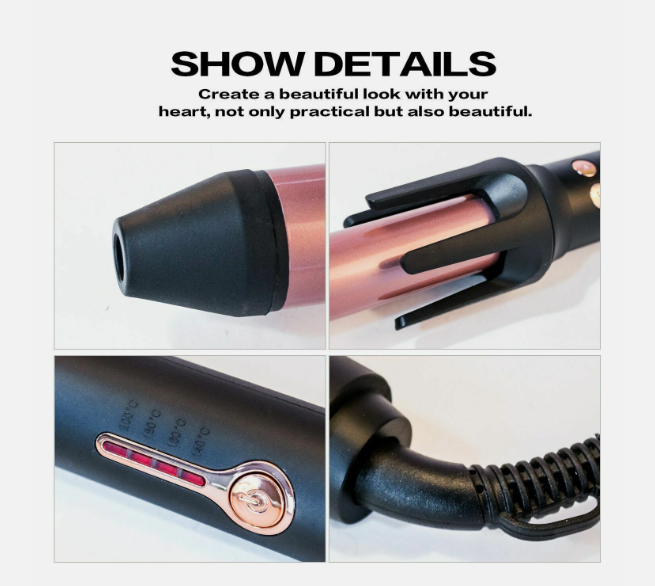 Voltage: 110-240V Frequency: 50/60Hz Power: 34W Fever: PTC Thermal Conductor Material: Aluminum Alloy Ceramic Coating Heat conduction diameter: 21-30 mm Four-stage temperature control, 140-160-180-200 Power cord length: about 1.8 meters, 360 degrees rotation, 60 minutes automatic power off, normally 55 revolutions per minute