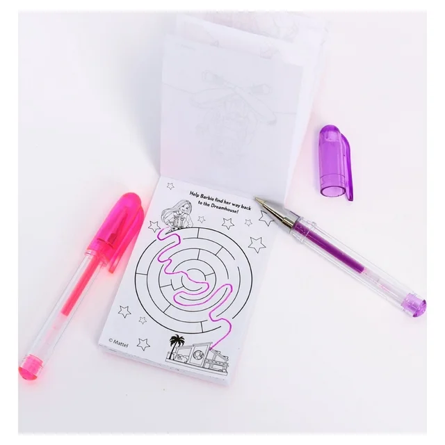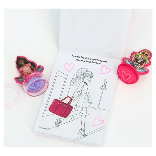 Includes an activity journal, 2 gel pens, 2 mini Barbie character stampers and 3 sticker rolls.