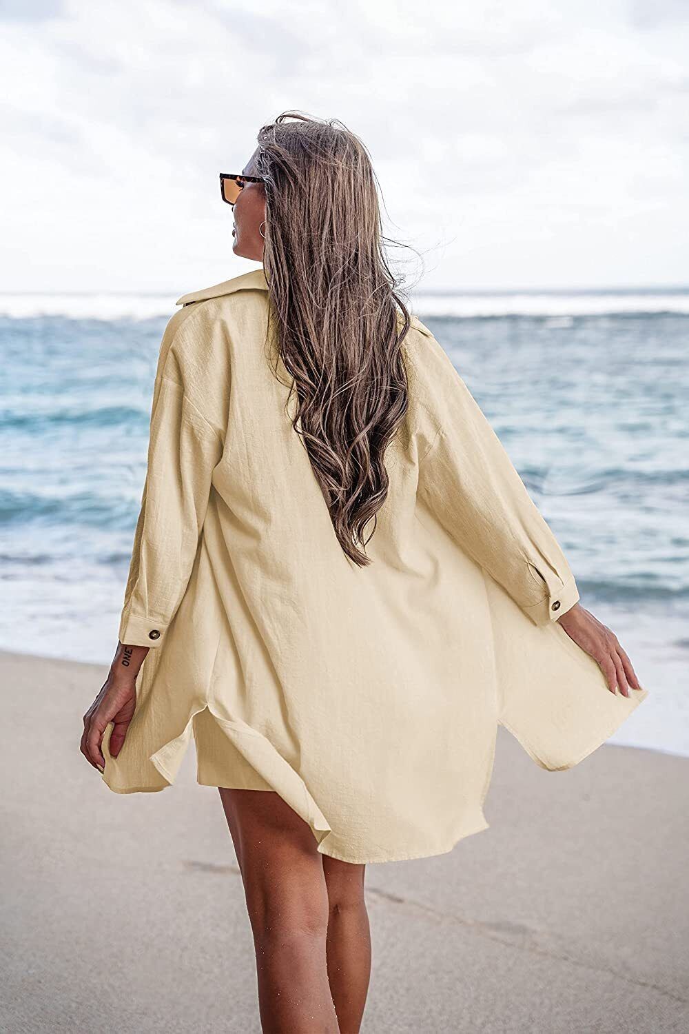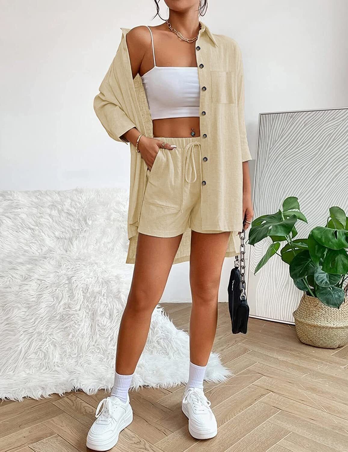 Beyove Women's Cotton Linen Set Casual Tracksuit Button Down 3/4 Sleeve Shirt