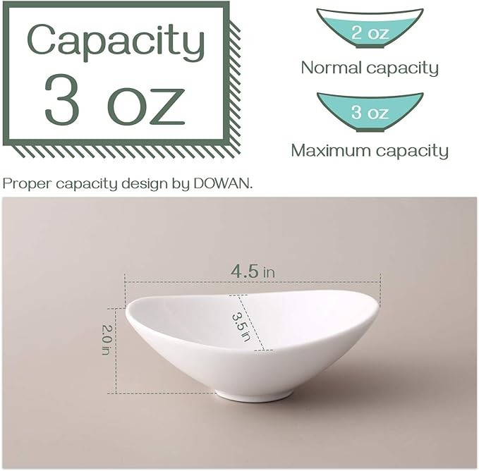 • Healthy and Sturdy Porcelain: Dowan condiment cups are made of top grade porcelain and fired at a high temperature to maximize the strength of the porcelain. These dipping sauce dish are durable ceramics, lead-free & cadmium free, and harmless. Never worry about harmful substances leaching into your food.
