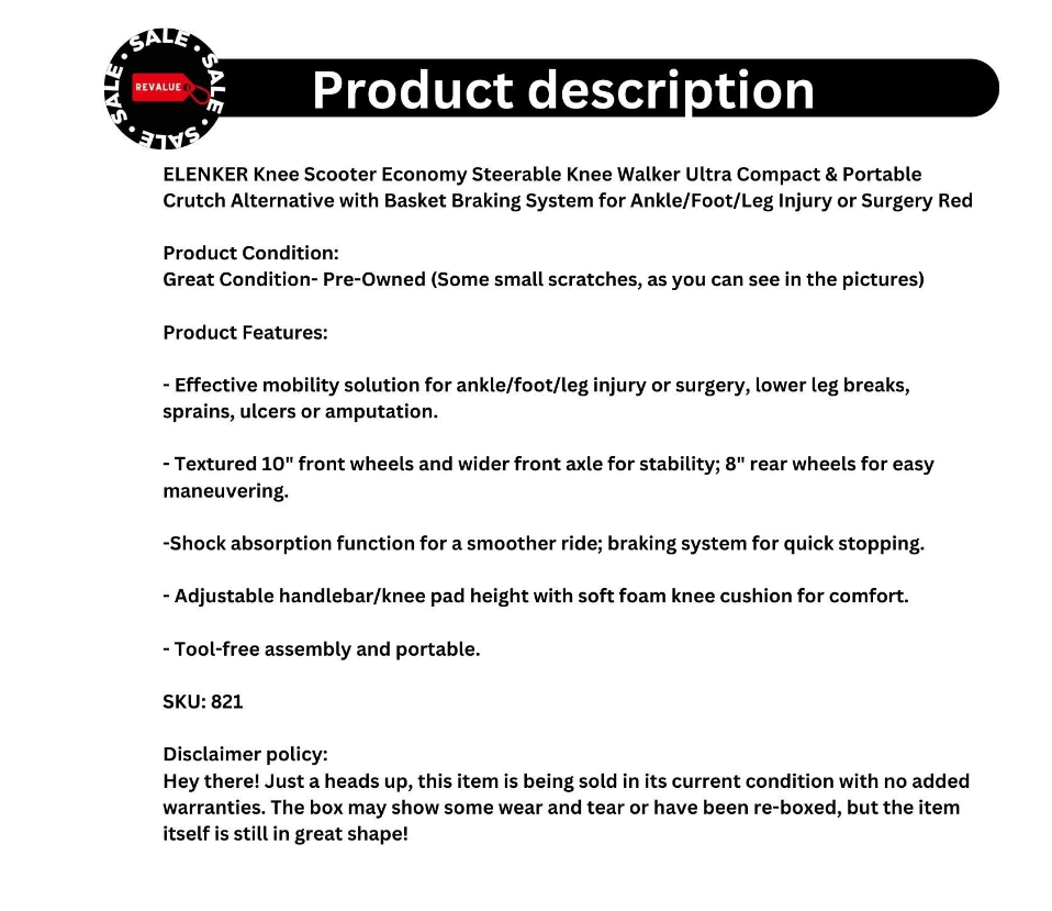 ELENKER Steerable Knee Scooter Walker Shock Absorber Ultra Compact Portable