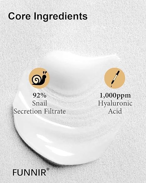 • 【Lasting Hydration】: Infused with 92% of snail mucin (also called Snail Secretion Filtrate), FUNNIR cream builds a moisturizing barrier to plump, hydrate, and soothes skin. This daily multi-solution cream glides onto the skin and awaken skin vitality.