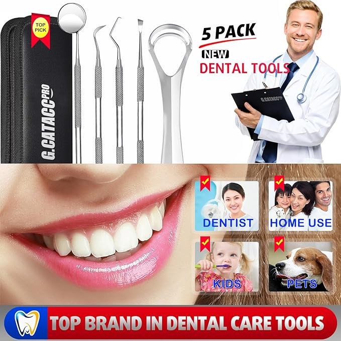 G.CATACC Dental Tools, Dental Pick, Dental Hygiene Kit, Oral Care Teeth Cleaning Tools Set, Stainless Steel Tooth Scraper Plaque Tartar Cleaner, Plaque Remover for Teeth - with Case