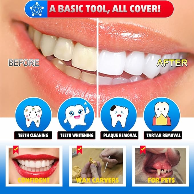 • More than 1,000,000 users falling in love with this top dentist recommended product, including dentist, adults, family and pet dogs. We also provide 1000+ days warranty for this dental kit. No work? Full Refund! You will be proud to use this great product for years to come! [ You will get: 5 Pack* dental tools, 1 Pack* carrying box, 1000+ days warranty! ]