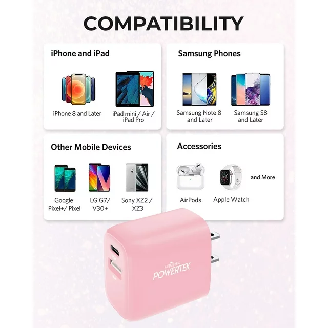 • Dual Ports: USB-C & USB-A Wall Charger Block