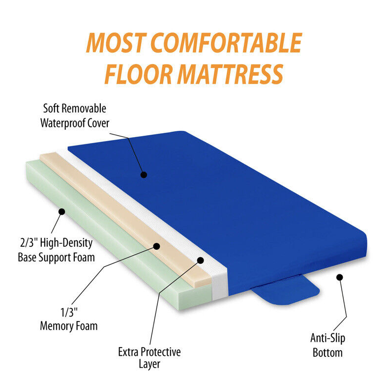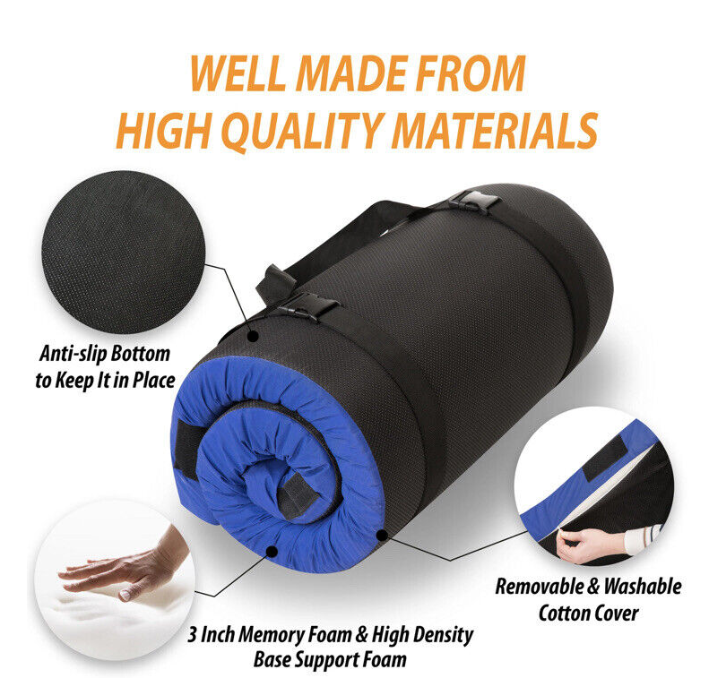 memory foam folding mattress is great for sports, overnight guests, college dorms, or as a kids' play mat.