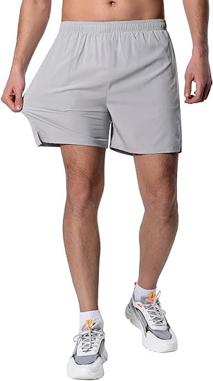 Men's 5 Inch Running Shorts Lightweight Athletic Workout Gym Shorts Liner with Zipper Pockets