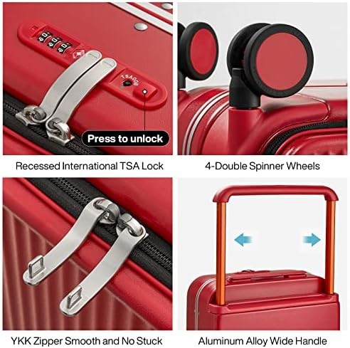 Mixi Carry On Luggage 20'' Suitcase with Front Laptop Pocket, Wide Handle Rolling Travel Suitcases PC Hardshell with Aluminum Frame Spinner Wheels & TSA Lock, Carry-On Luggage(Red)
