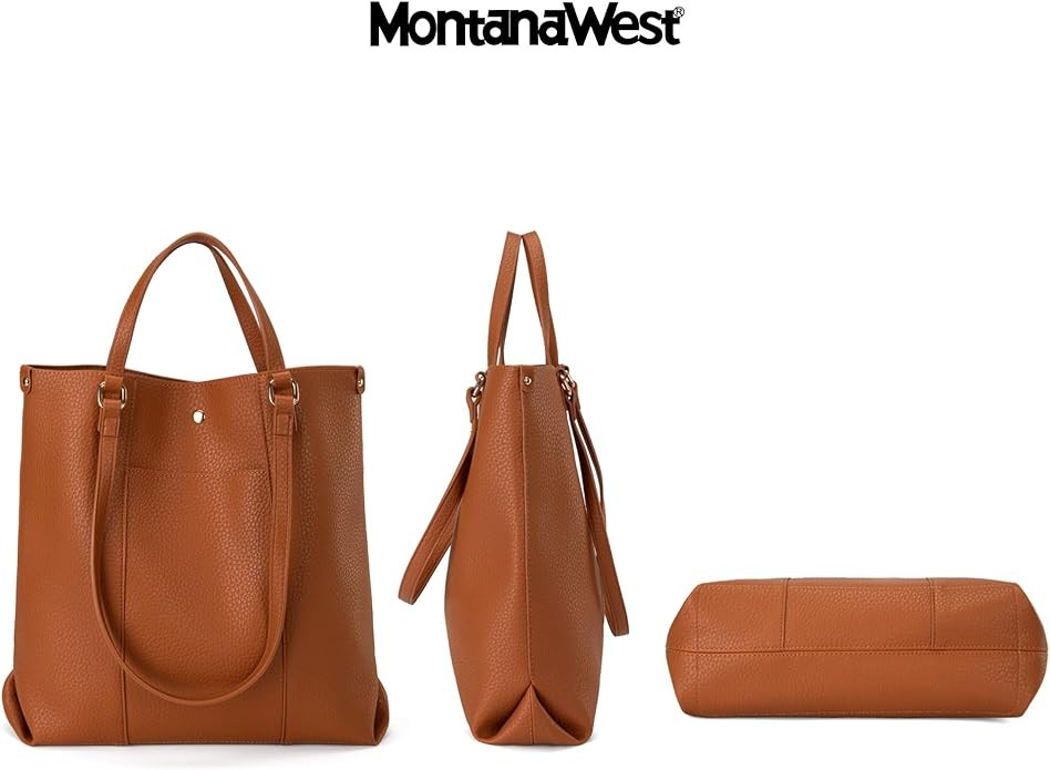 Montana West vintage large tote bag is crafted out of premium vegan leather, accommodates daily essentials with a spacious and organized space, and a magnetic to secure it shut. The top handle handbag features a double carry design, wear it flexibly on the shoulder with long handles or as a handbag with short handles.