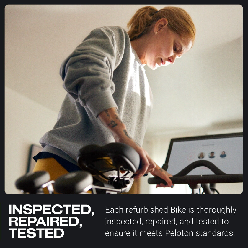 “Peloton Certified Refurbished Bikes are thoroughly inspected, repaired, and tested to make sure ...