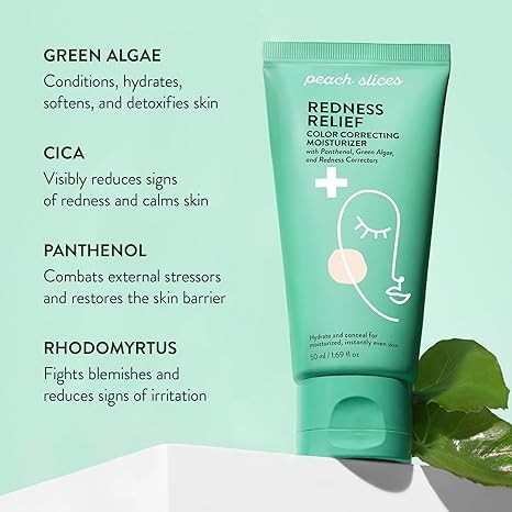 Peach Slices Redness Relief Color Correcting Moisturizer instantly conceals and corrects redness while deeply moisturizing and calming skin. Clean Color Correcting Technology intelligently adjusts color to leave red, irritated skin looking even, and smoot