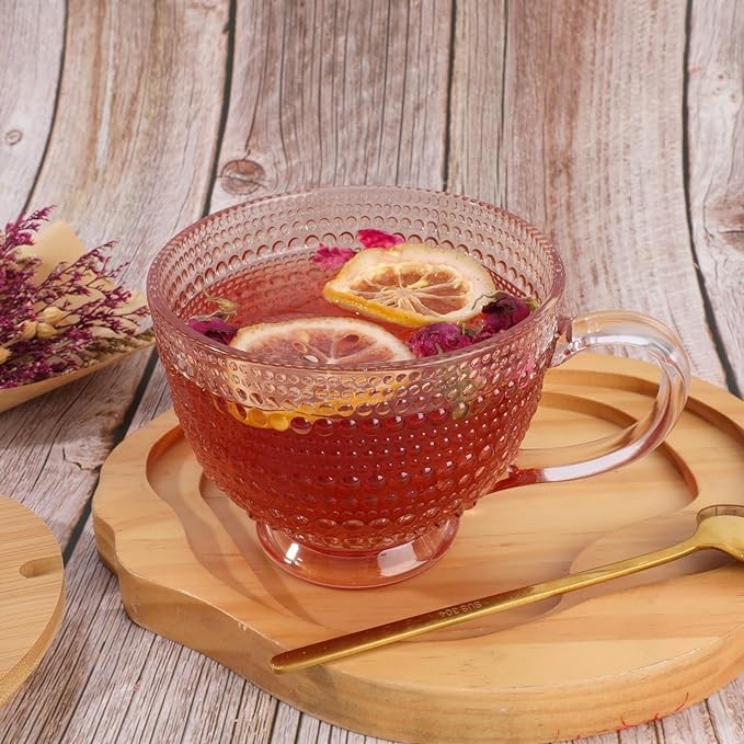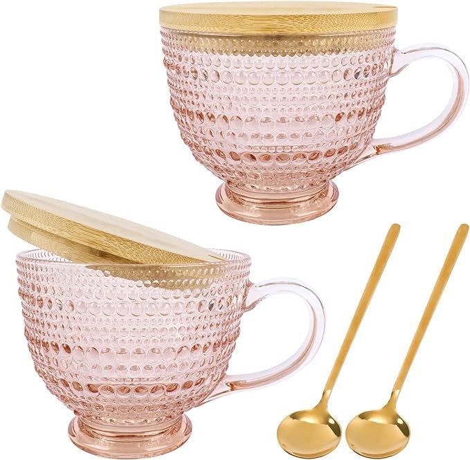 ☕Vintage Design: These pink coffee mugs feature a vintage design with a clear glass body that shows off the beautiful color of the coffee, while the wooden lid and spoon add warmth and unique style. The grain and detailing of the cups are unforgettable and make coffee savoring even more pleasurable.