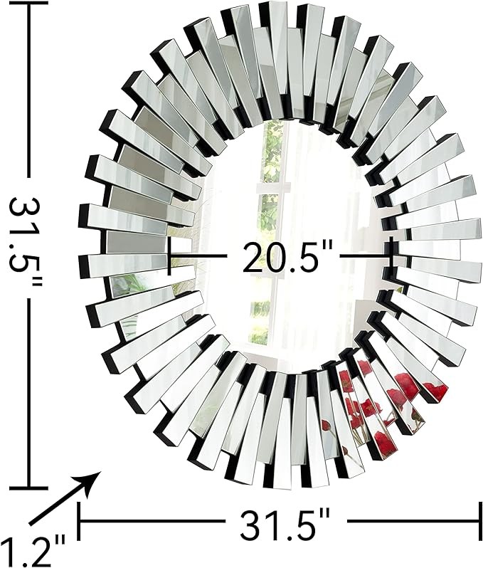• Impressive 31.5-Inch Diameter: Elevate your living space with this generously sized 31.5-inch circular mirror. Perfect for your living room, entryway, or bedroom walls, it adds a captivating focal point, bringing a touch of sparkle to your room.
